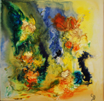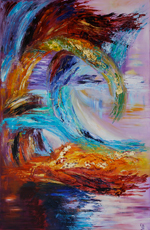 Née en 1952 à Nevers, de formation scientifique en tant que Pharmacien biologiste, profession que j’exerce jusqu’en 1998, c’est en 2000 que je me consacre pleinement à la relation d’aide et à mes activités artistiques; titulaire du Diplôme Universitaire d'Art-Thérapie de la Faculté de Médecine de Tours, d’un Master de Sophrologie- Somatothérapie et d’un Certificat de Praticien en Relation d’aide, je suis également formatrice auprès de personnel social et sanitaire. J’anime des stages, des ateliers autour de la peinture spontanée et du mandala, ces approches font aussi partie de mes accompagnements art-thérapeutiques. Passionnée par les couleurs et les formes depuis l’enfance, j’aborde un parcours artistique autour du chant et de la peinture pour mon plaisir en suivant des cours et participant à des ateliers, mes premières expressions picturales sont figuratives, puis en 2003 je découvre les “mandalas créatifs” ou “dessin centré” qui m’ouvriront les portes de la créativité plus “spontanée”; depuis plusieurs années je me perfectionne dans l’approche de la peinture abstraite qui se veut lyrique et spontanée tout en passant par le corps et le geste. Ma rencontre avec l’artiste peintre coloriste Muriel Cayet me fait découvrir des techniques singulières et innovantes comme l’aquagraphie l’utilisation des poudres minérales, que j’ exploite depuis largement dans mes oeuvres. Je crée le plus souvent mes toiles dans une sorte d’urgence émotionnelle, la couleur, le geste m’emportent et me conduisent vers cet inconnu qui émerge de mon inconscient...Mise à jour, mise à nu, jusqu’à oser le regard : le mien puis celui de l’autre sur cet instant, “cet ici et maintenant” posé sur la toile... Je joue avec toute une variété de médiums: peintures acryliques et huiles, matières minérales, pigments, collages, feuilles d’or, pastels, et je varie au gré de mon humeur les formats et les supports. Je trouve mon inspiration dans le regard que je porte sur la nature et les mystères de la Vie, et travaille souvent en musique. Mes oeuvres transportent chacun dans le monde du rêve et de l’imaginaire. "Flamboyante ! Certes la couleur explose sous le pinceau, sous le couteau; mais le