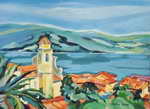 ; Elle joue de son pinceau avec les courbes et les arrondis, avec